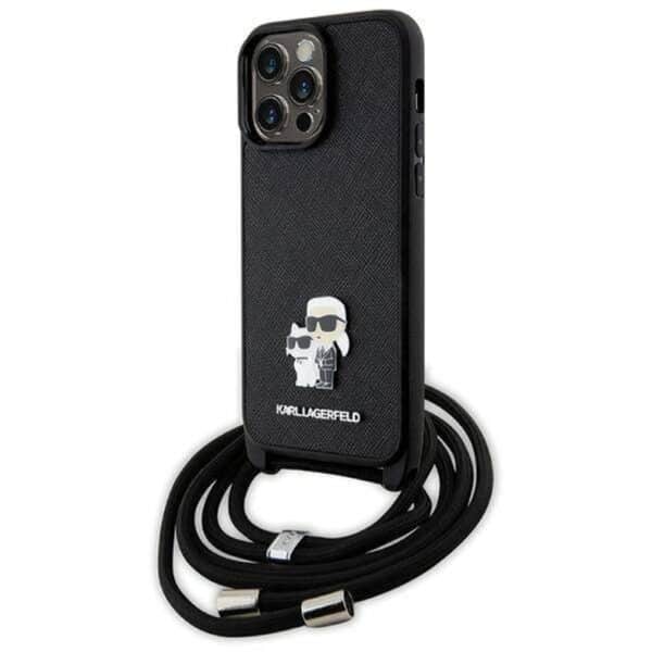Etui Karl Lagerfeld Crossbody Saffiano Metal Pin Karl & Choupette na iPhone 15 Black (KLHCP15SSAKCPSK)